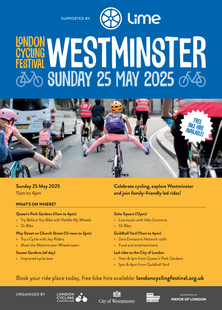 The London Cycling Festival rolls into town on Sunday 25 May, and Westminster is ready to ride! Organised by the Zero Emissions Network and London Cycling Campaign, the festival celebrates cycling with free activities, led rides and bike hire offers for all ages.